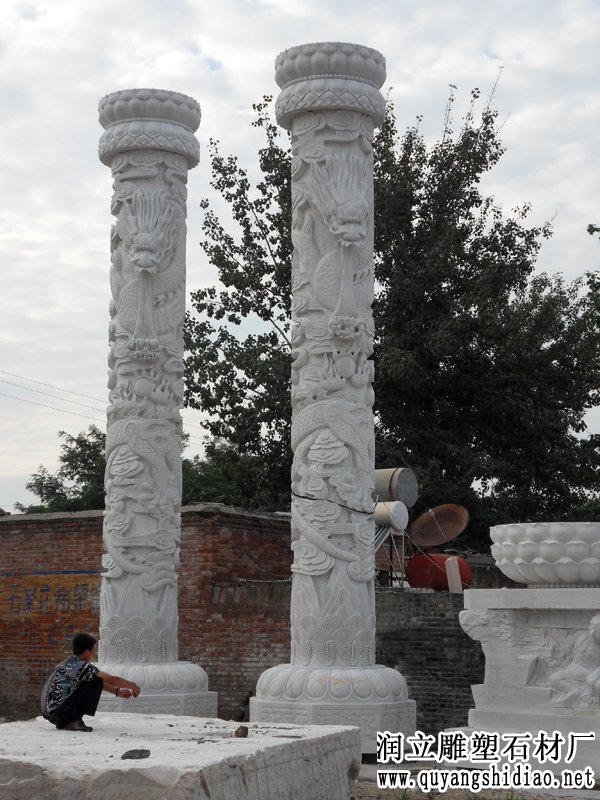 是我国比较传统的一种雕塑建筑物也可以说成是雕塑摆件。盘龙柱有着悠久的历史,在这跟龙柱上大家可以看到更多的石雕工艺,上边都是雕刻大师经过手工慢慢经雕刻的劳动成果,师傅们把作为中国吉祥的“龙”雕刻在石柱上面具有吉祥、华贵的寓意。此产品主要运用在寺庙、宫殿、广场室外建设所用,圆柱外围雕塑的缠柱祥龙,破云而入,